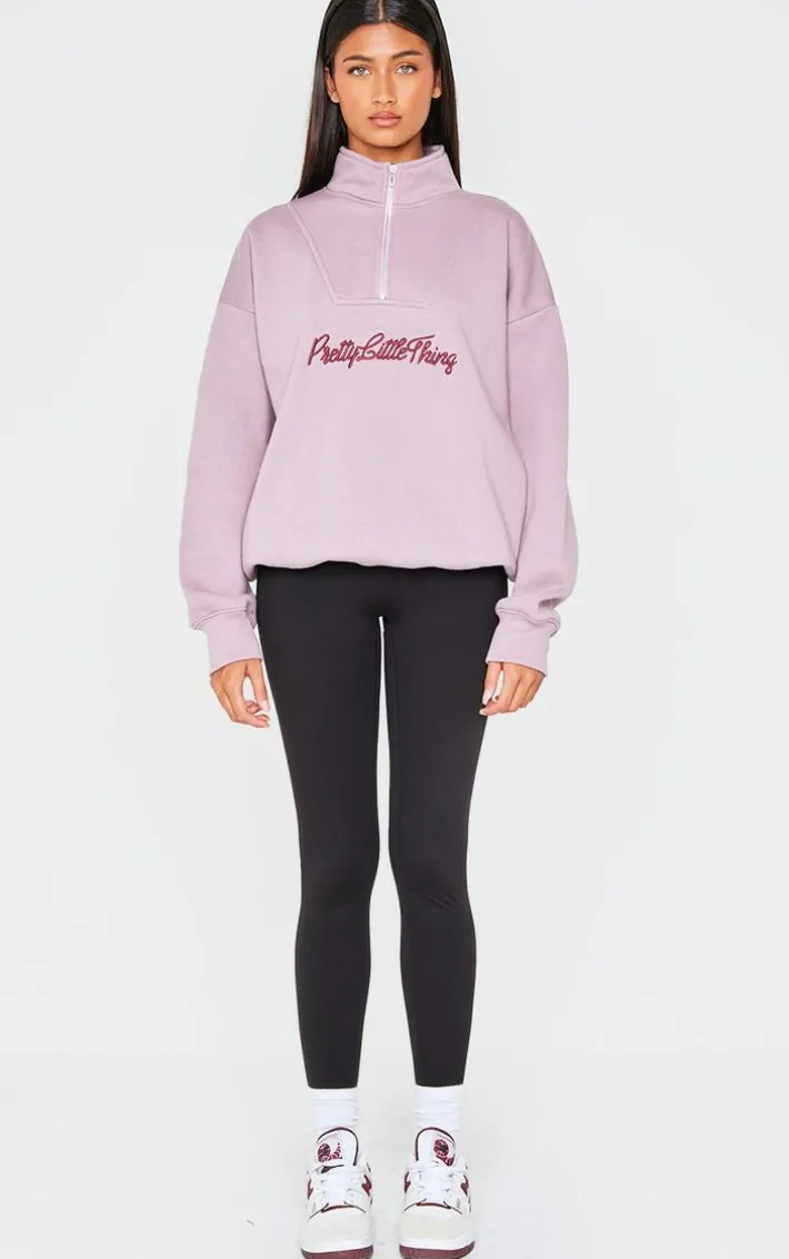 Make styling easy with this PrettyLittleThing mauve half zip sweatshirt. Brought to you in a mauve hue sweat material with a half zip fastening, this sweatshirt is all the new you need. How can you resist? Style with leggings and fresh kicks for an off duty look we can’t get enough of.