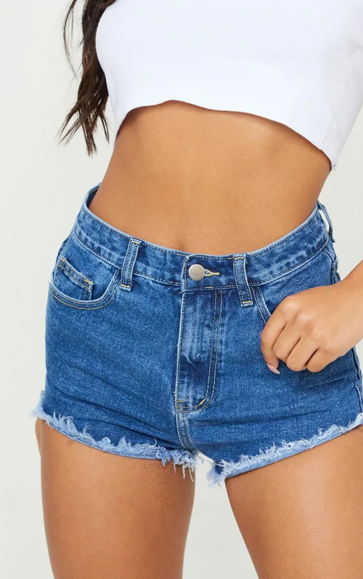 These denim shorts are a must-buy for the upcoming SS. Featuring a mid-blue wash denim material with frayed hems and a cute fit, team these with a knit top and sandals for the ultimate look.