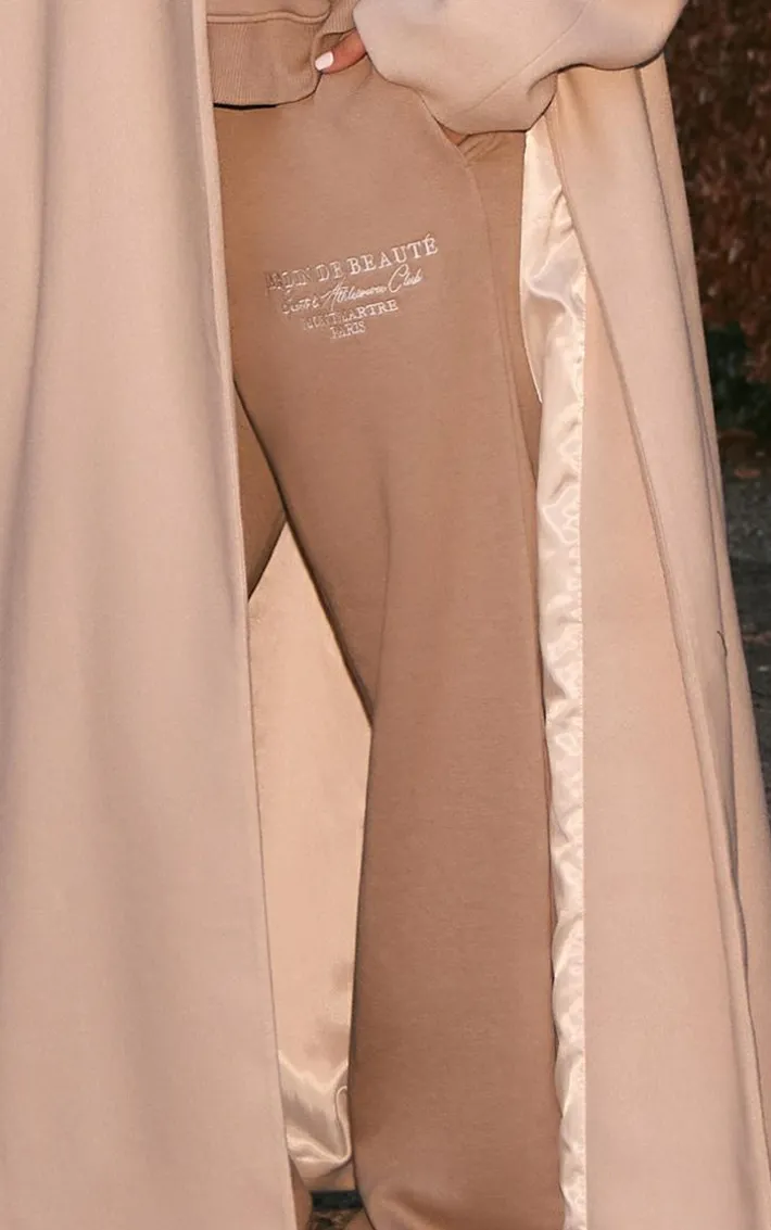 Give your off-duty wardrobe the chic upgrade it deserves with these PrettyLittleThing mocha logo embroidered wide leg sweatpants. It is made using a mocha hue material with a ‘PrettyLittleThing’ embroidered detail and a wide leg fit, we’re seriously obsessed. Team with the matching Sweatshirt, comfy boots and some ear muffs for a fool proof finish.
