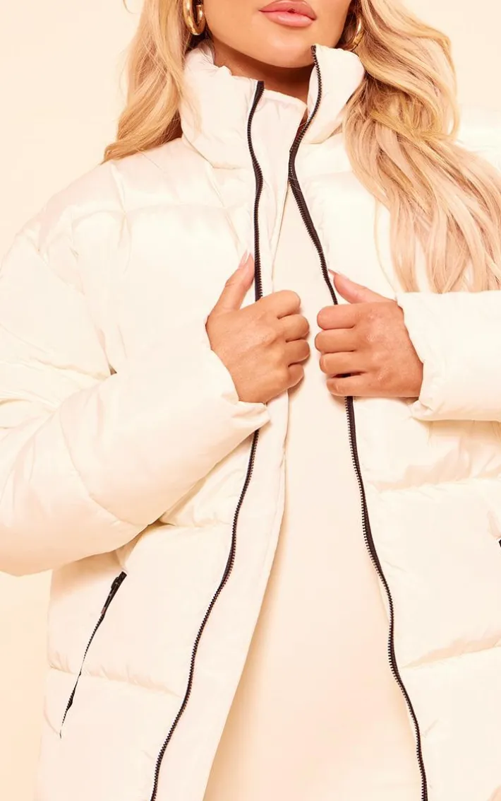 Layer up in style with this PrettyLittleThing off white panelled high neck puffer coat. This puffer coat is brought to you in an off white hue with a high neck and a puffer style, this coat is everything you need to stay warm. Simply style over a white top and leggings paired with your box-fresh kicks and everyday essentials for a vibe like no other.