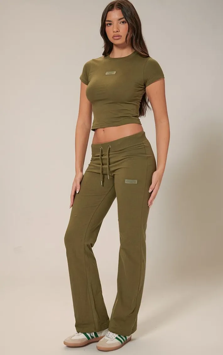 This PrettyLittleThing olive badge low rise straight leg pants are perfect for those throw on and go days. Brought to you in a luxe olive hue, with a badge detail and low rise design, what more could you ask for? Style with the matching fitted top and a pair of sneakers for an elevated day look.