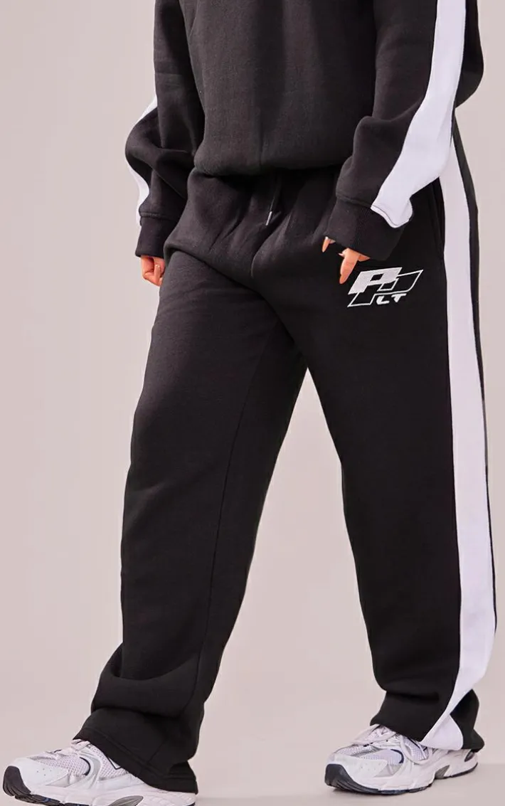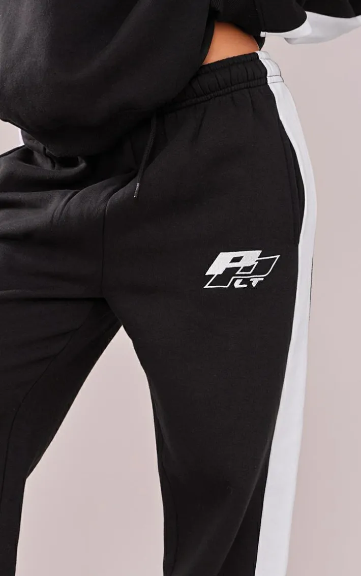 Comfort is key this season, that’s why we’re loving these PrettyLittleThing petite black embroidered side panel straight leg sweatpants. Brought to you in a black material, with a ‘PLT’ embroidered logo design and panel detailing, what’s not to love? Team these straight leg sweatpants with the matching Sweatshirt and a pair of fresh sneakers to complete the look.