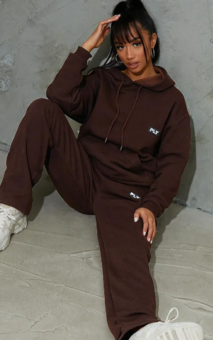 Take those chilled days on in style with these PrettyLittleThing petite chocolate badge detail straight leg sweatpants. Brought to you in a chocolate hue material with a ‘PrettyLittleThing’ badge design and a straight leg fit, how can you say no? Team these petite sweatpants with the matching hoodie, sneakers and your everyday accessories for a seriously comfy combo that we just can’t get enough of.