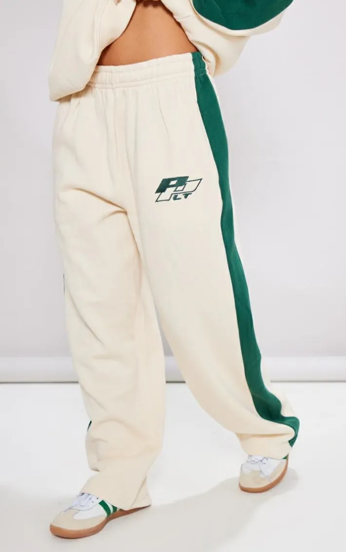 Keep your look super chilled this season with this PrettyLittleThing petite cream embroidered side panel straight leg sweatpants. Their cream hue material is a must-have and its embroidered detail adds that extra luxe touch to any look. These petite sweatpants feature a straight leg fit and side panel that elevates your look to new heights. Team with the matching Sweatshirt, chunky kicks and minimal accessories for a look that won’t go unnoticed.