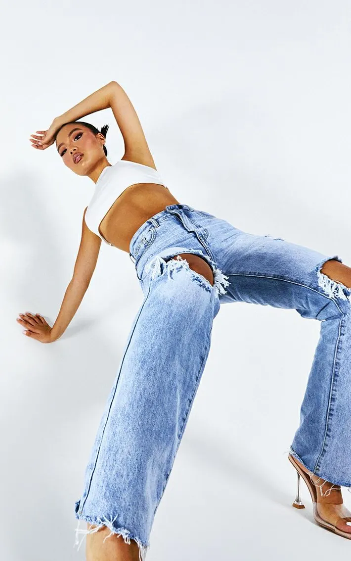 These jeans are perfect for the new season wardrobe. Featuring a light blue wash denim with distressed detailing and a straight leg fit, complete the look with a shirt and some fresh chunky kicks to keep it effortlessly chilled.