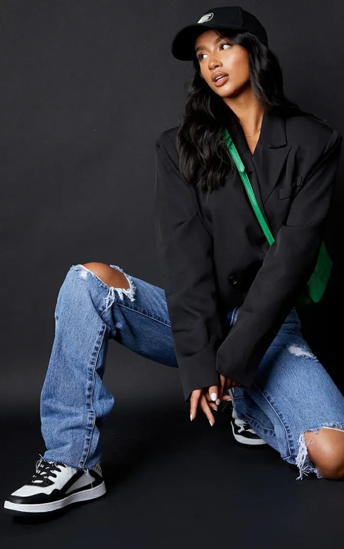 Amp up your denim collection with these jeans. Featuring a mid-blue wash denim material with distressed rips, a long leg and straight fit, we’re in love. Team these with a white crop top and fresh white kicks for an off-duty combo we are loving.