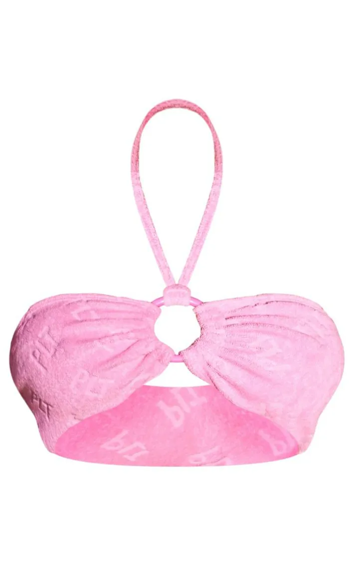 Earn all the likes in this PrettyLittleThing pink burnout towelling ring halter neck bikini top. This bikini top is made from a pink burnout towelling material with a halterneck design and an O ring detail, what’s not to love? This bikini top won’t let you down. Complete the look by styling this with the matching bikini bottoms, sandals and accessories for a fool-proof finish.