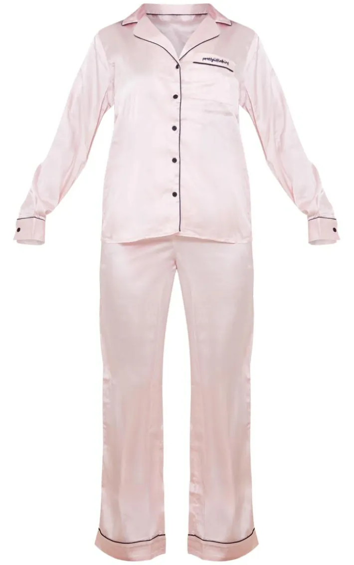 Feel feminine in this dreamy PrettyLittleThing pink contrasting piping satin long PJ set. This set includes a long sleeve button up top and matching bottoms, both in pink satin material with a contrasting piping design and a comfy fit, what’s not to love? Team this PJ set with slippers and a robe to complete the cosy combo.