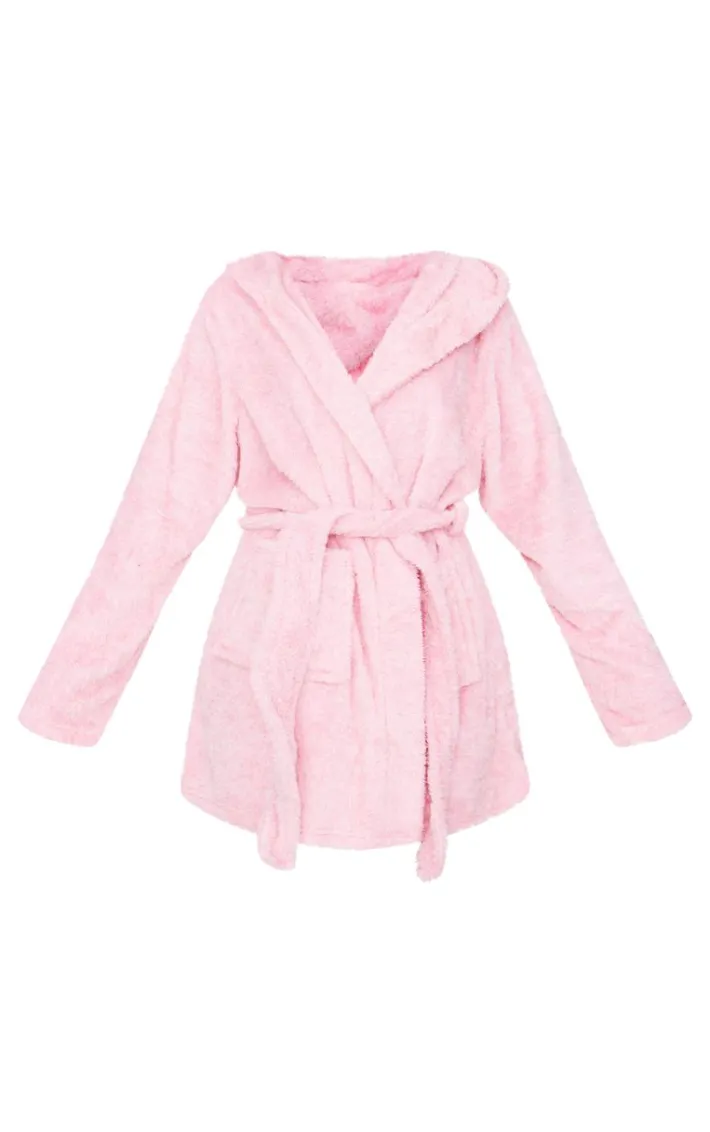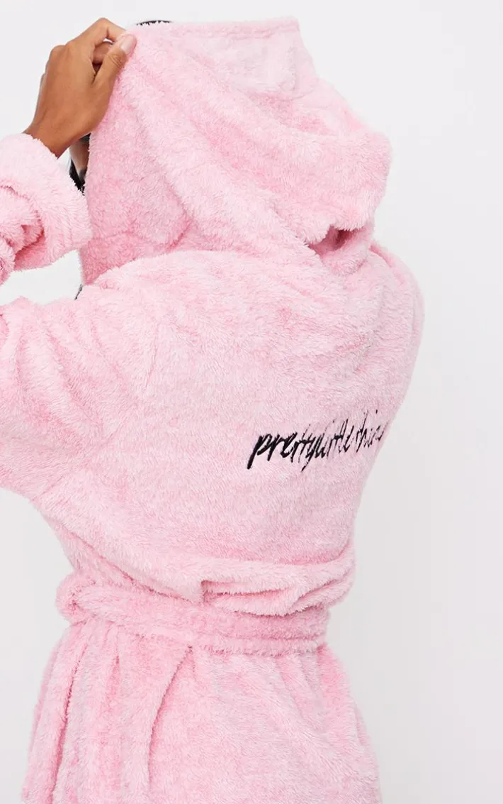 This fluffy bath robe is sure to bring all the comfy but chic vibes to your sleepwear wardrobe. Featuring a pink fluffy material with a ‘PrettyLittleThing’ embroidered logo on the back, a tie waist and a hooded design, what’s not to love? Whether you’re getting ready for a nightor having a cosy night in, this pink bath robe is a must-have. Team this hooded bath robe with a pajama set and slippers to complete the look.