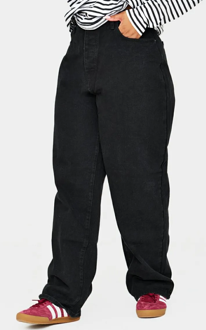 Update your new season wardrobe with these jeans. Featuring a washed black denim material with a high waisted fit and boyfriend fit, team them with a glitter crop top and heels for a look that will get heads turning.