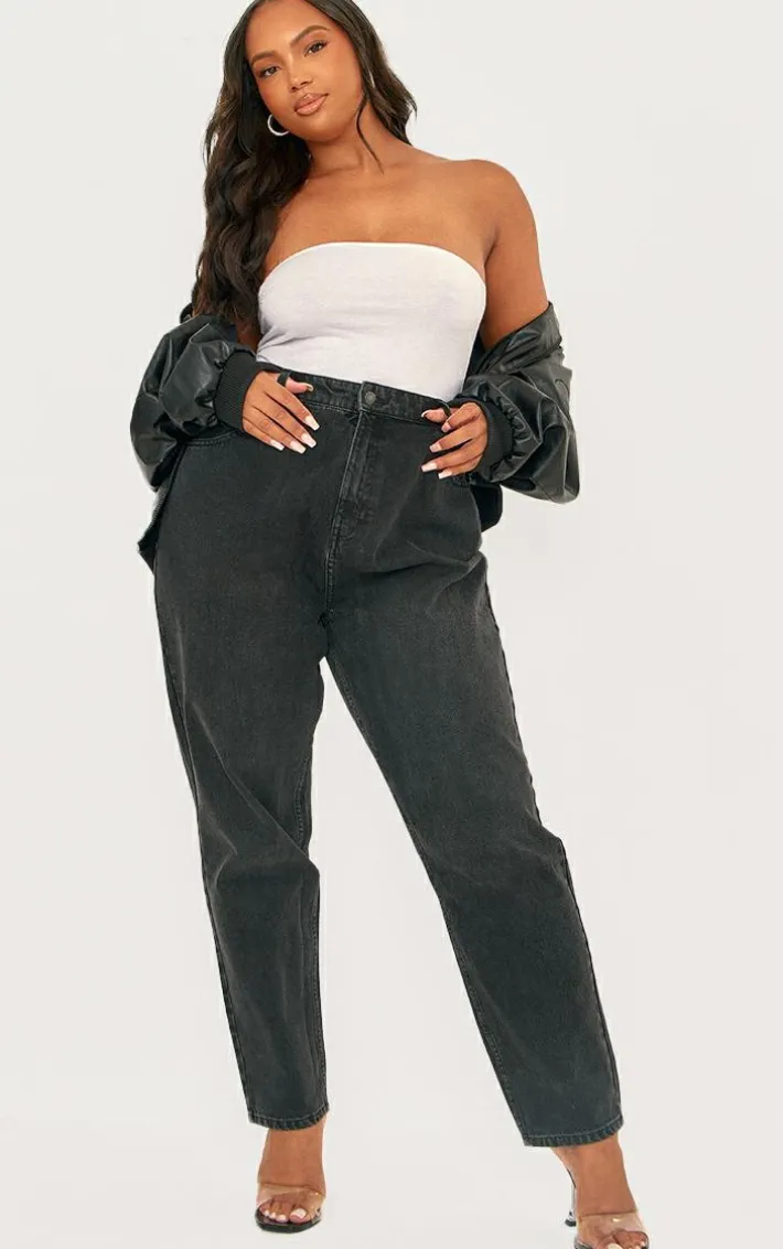 Every needs a pair of staple jeans and we are loving these PrettyLittleThing plus washed black high-rise mom jeans right now. Featuring a washed black denim material with high rise waist and a mom fit, how could you say no? Whatever your plans are, whether its weekend plansor a shopping date, these plus jeans will be your go-to. Style with a crop top, clear heels and simple accessories for a weekend-worthy combo.