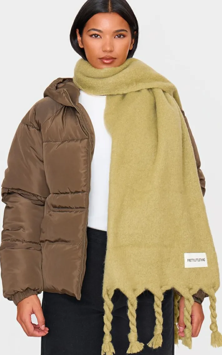 Channel all the comfy but chic vibes into your new season wardrobe with this PrettyLittleThing sage tab fuzzy blanket scarf, you’re sure to be nailing major trends. Brought to you in a sage hue material with a ‘PrettyLittleThing’ tab detail and a blanket style, we’re seriously in love. Team this fuzzy scarf with your fave A/W fit for a look everyone will want.