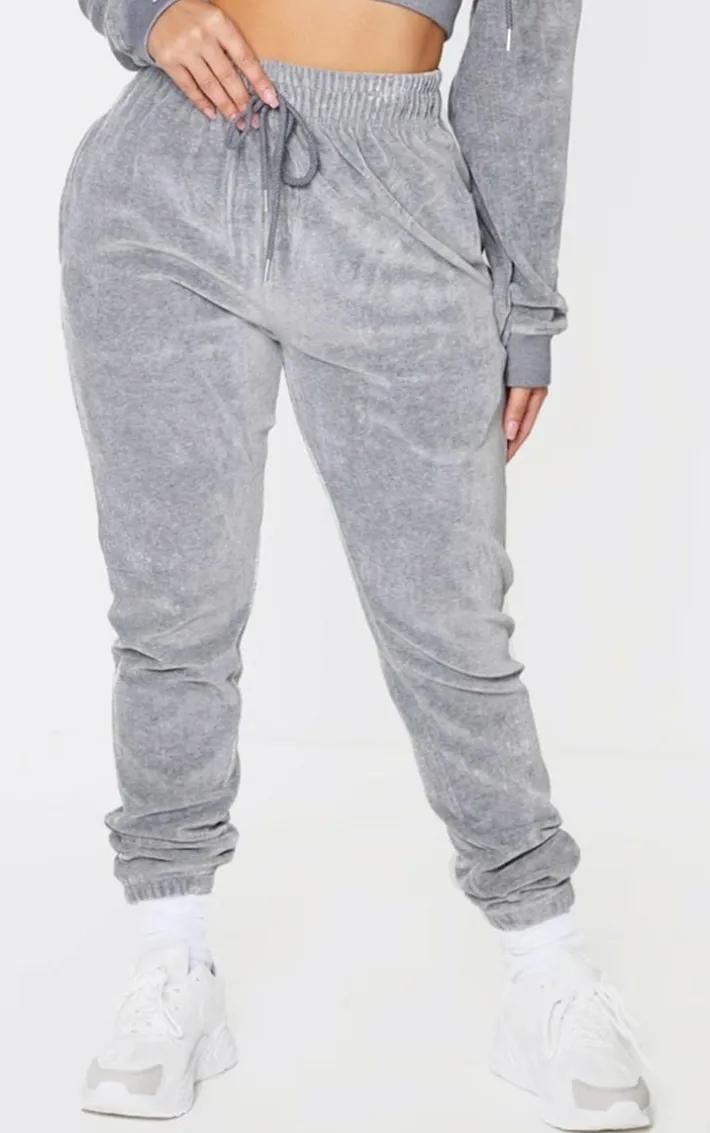 Give your look a luxe touch with these comfy PrettyLittleThing shape grey velour diamante skinny sweatpants. These sweatpants feature a grey velour material with a drawstring waist and a skinny fit. Style these with the matching cropped sweatshirt and fresh kicks for an off-duty look we’re loving.