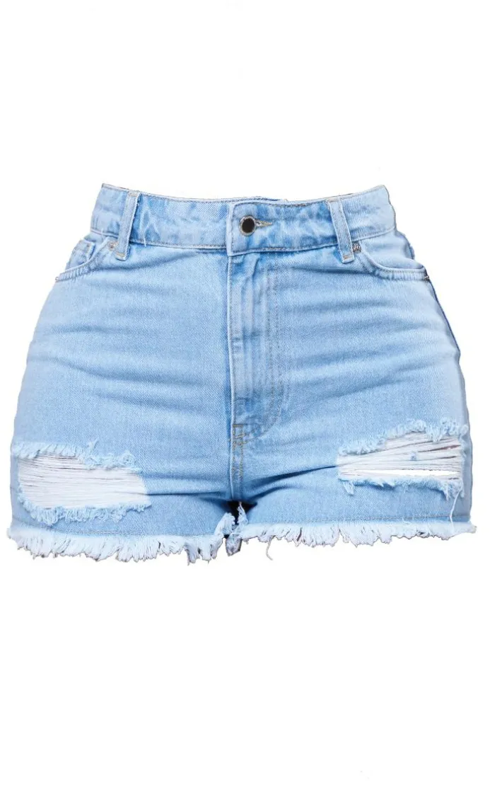 Give your everyday look an edge with these shorts. Featuring an light blue wash denim material with a ripped hem design, we’re in love. Style with a simple crop top and fresh kicks for the ultimate off-duty look.