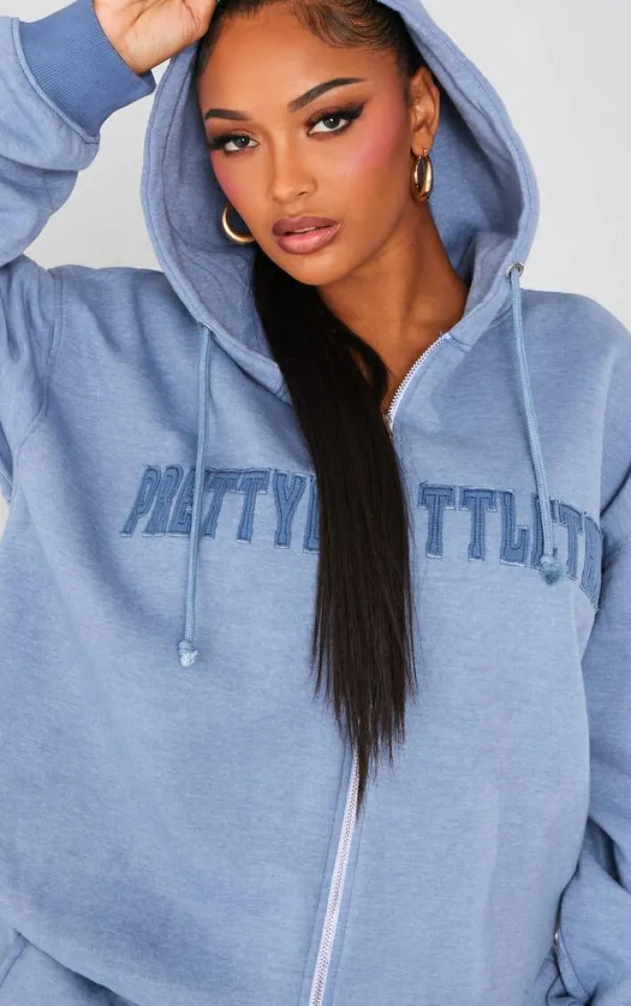 Take your chilled days on in style with this PrettyLittleThing shape petrol blue embroidery washed zip through hoodie. Brought to you in a petrol washed material with a ‘PrettyLittleThing’ embroidery print, we are obsessed. This hoodie has a zip through detail bringing all the edge to your outfit of the day. To complete the look pair this with the matching sweatpants and a pair of sneakers. ItÂ’s a yes from us.