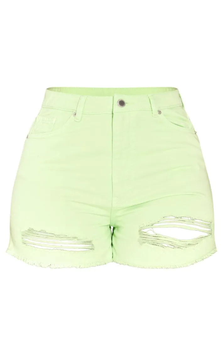 Brighten up your denim collection with these PrettyLittleThing shape washed green ripped denim shorts. Brought to you in a washed green denim material with ripped detailing and a flattering fit, what more could you want? Style these shape shorts with a bandeau top, heels and gold accessories for a look that won’t go unnoticed.