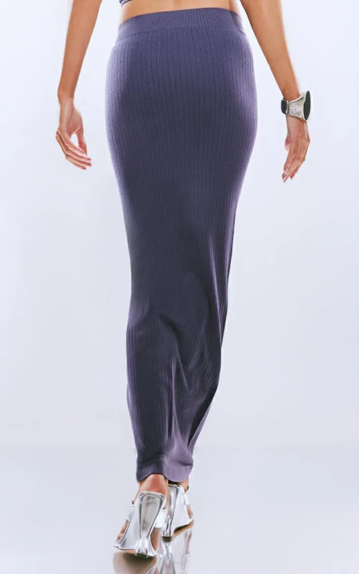 Up your style game with this steel blue washed wide snatched rib low rise midaxi skirt. This skirt is made from a steel blue rib material with a low rise design for a flattering fit you won’t want to resist. In a midaxi length, we are seriously obsessed. Team with a bandeau top and some statement heels to elevate the look even further.