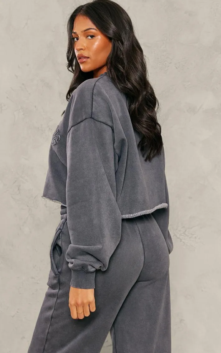 Go for all the fresh vibes this season with this PrettyLittleThing tall charcoal blue distressed varsity cropped Sweatshirt. With a charcoal blue material, a distressed varsity design and a cropped length, this tall Sweatshirt is here to solve all your ‘what to wear’ dilemmas. Pair with the matching sweatpants, sneakers and your go to accessories for a combo we’re crushing on.
