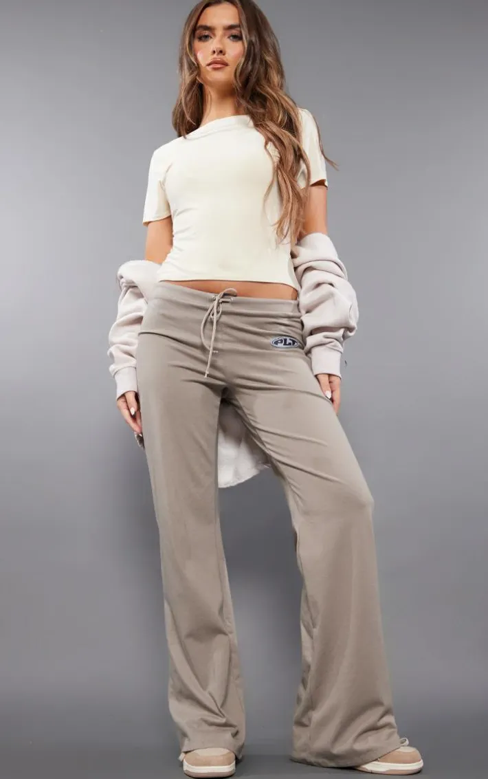 Keep your look neutral yet chic with these PrettyLittleThing taupe badge low rise flared pants. Brought to you in a taupe hue material with a ‘PrettyLittleThing’ badge, a low rise design and a flared leg fit, how can you resist? Team these flared pants with a t-shirt, sneakers and an oversized hoodie for a seriously comfy combo we just can’t get enough of.