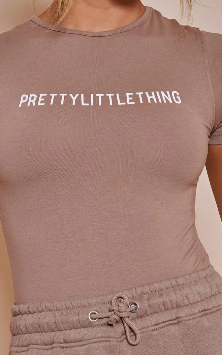 Level up your everyday look with this staple bodysuit. Featuring a toffee hue material with short sleeves, a ‘PrettyLittleThing’ logo print and a figure-flattering fit, we are in love. Wear with the matching bottoms and box fresh kicks for the ultimate chilled combo.