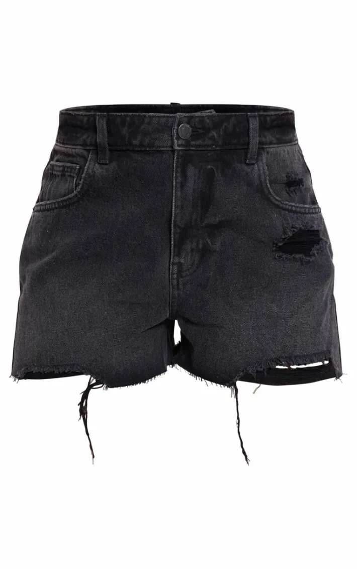 Meet your new season style saviour with these PrettyLittleThing washed black distressed high rise mom denim shorts. Brought to you in a washed black denim material with a high rise design, distressed detailing and a mom fit, what more could you need? Style these denim shorts with a bodysuit and sneakers for a fierce off-duty ‘fit we just can’t get enough of.