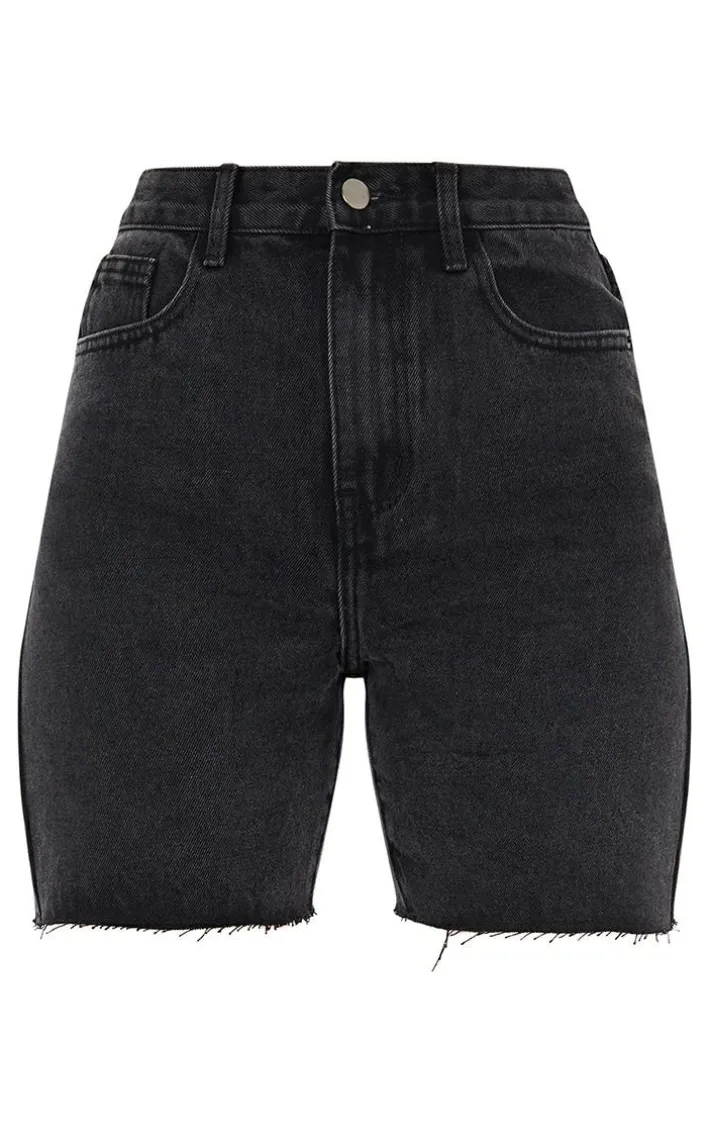Amp up any outfit of the day with these killer shorts. Featuring a black denim material with a longline fit and belt loops, team these with a black crop top and chunky boots for an all black ensemble.
