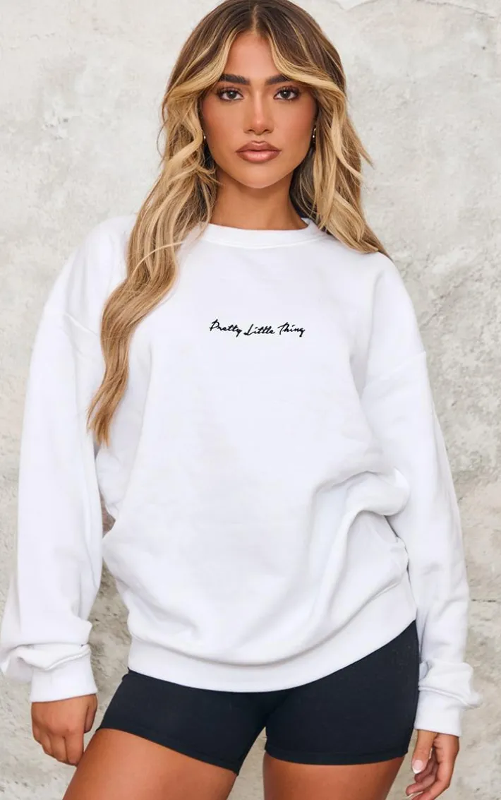 Say hello to your new season staple with this PrettyLittleThing white oversized basic sweatshirt. This sweatshirt is brought to you in a white hue with a ‘PrettyLittleThing’ print an oversized and a basic style, how could you say no? Style effortlessly with your black leggings, box-fresh kicks and accessories for a look that will turn heads for all the right reasons..
