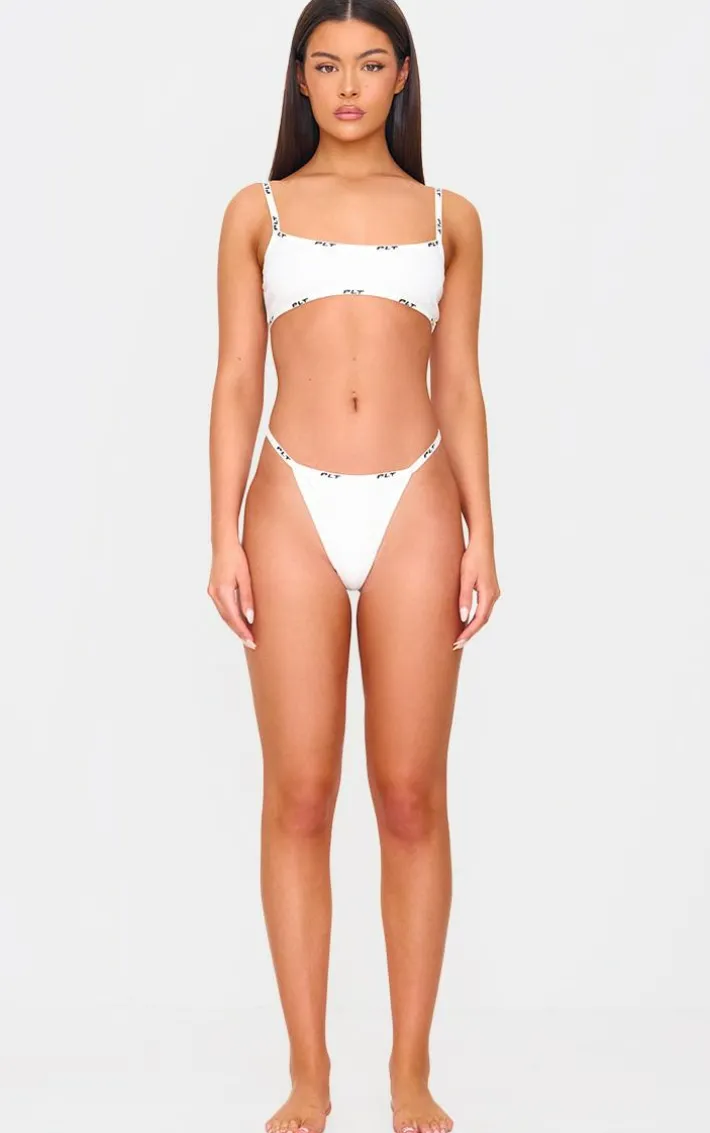 Keep it comfy with this PrettyLittleThing white jersey bralette. Brought to you in a white jersey material with a ‘PLT’ print design, you are sure to feel effortlessly laid back in this bralette. Team with the matching thong and your fave accessories for a fool proof finish we are loving.