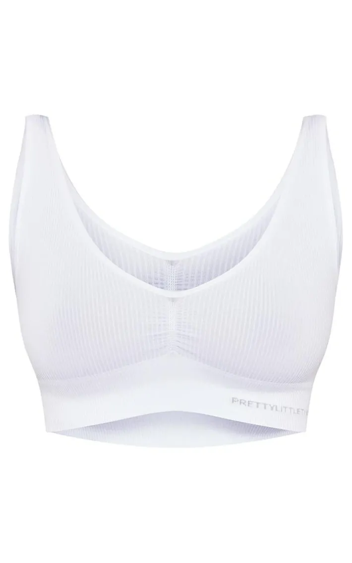 Add some comfy vibes to your new season wardrobe with this bra. Featuring a white seamless material with a ruched front design and a V neckline. Style with matching bottoms and an oversized shirt for a look we’re loving.