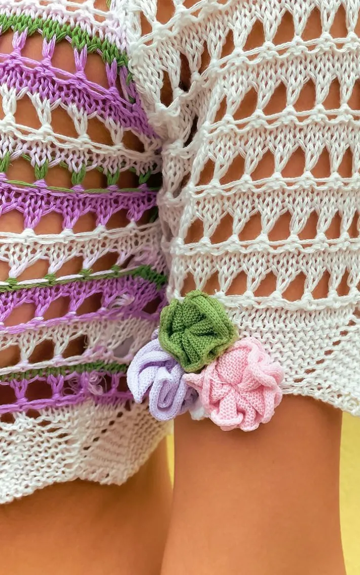 Say hello to your new season staple with this purple open crochet knit lace up floral applique top. Brought to you in a purple knit material with an open crochet design, what more could you want? This top has a lace up fastening and an applique detail, that will be showing off your shape in all the right places. What more could you want ? Style with some comfy sneakers, a statement skirt and your fave accessories for a look that have you being the topic of everyone’s conversation.