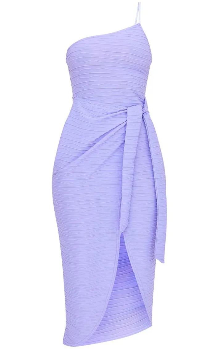 Give your look a chic touch with this midi dress. Featuring a purple textured material with a one-shoulder strap design and a flattering fit. Team this with heeled mules and a shoulder bag to complete the look.