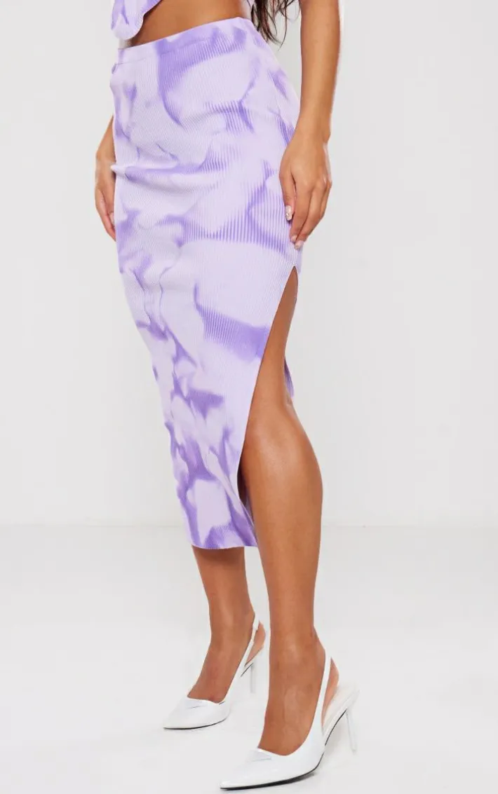 For an Insta worthy look, this purple tie dye rib knit side split maxi skirt is essential. This skirt is made from a purple rib knit material with a tie dye design, giving you a flattering fit you won’t be able to resist. it’s side split will have you feeling effortlessly chic all season. Why not team with the matching top and a pair of heels to complete the look everyone is talking about.