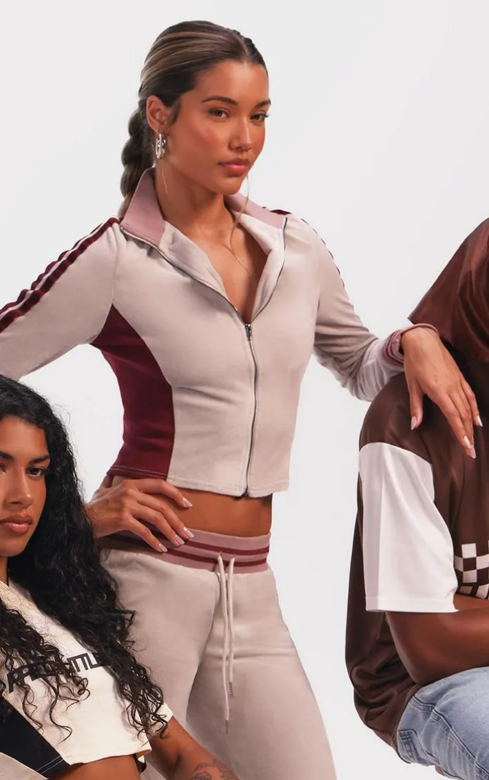 It’s official, we’re obsessed with this purple velvet fitted front zip track top. Brought to you in a purple hue velvet material with a fitted design and zip front fastening, this track top is obsession-worthy. Style with the matching sweatpants, fresh kicks and gold hoops for a combo we’re loving this season.