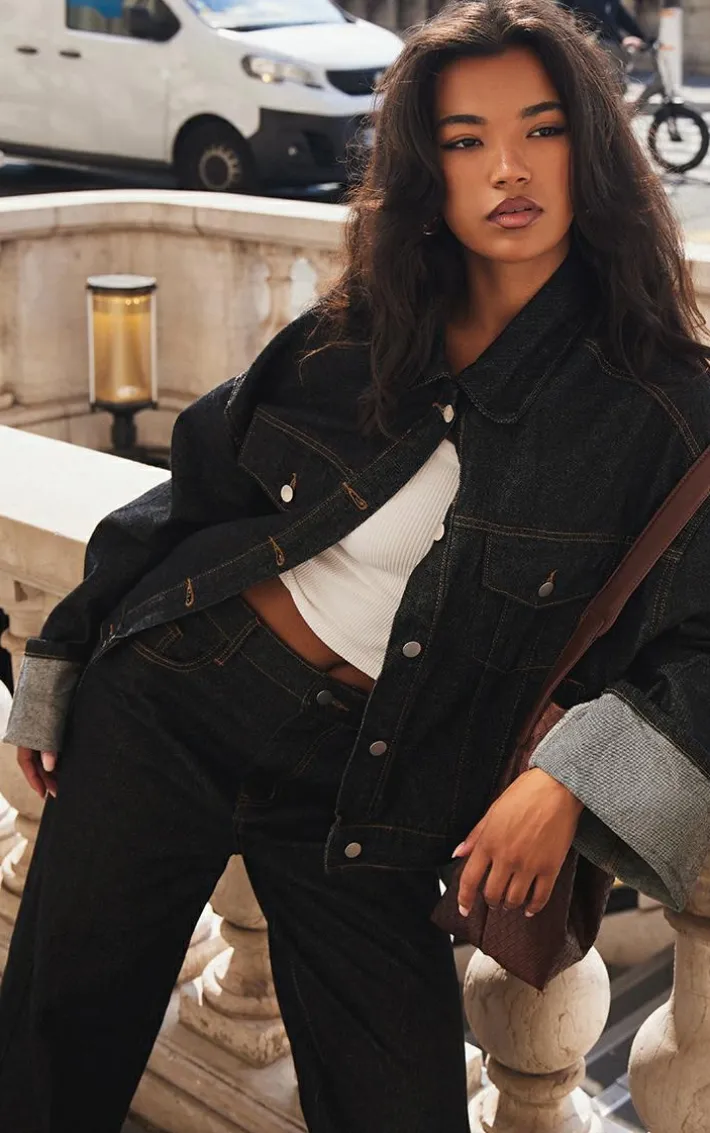 Elevate your everyday look with these raw indigo wash contrast stitch turn up hem wide leg jeans, perfect for your everyday styling and beyond. Brought to you in a raw indigo wash material with a contrast stitch and a turn up hem, it’s a yes from us. With a wide leg fit, these jeans are sure to be your new go-to. Style with a basic tee, a matching denim jacket and a pair of sneakers to complete the look.