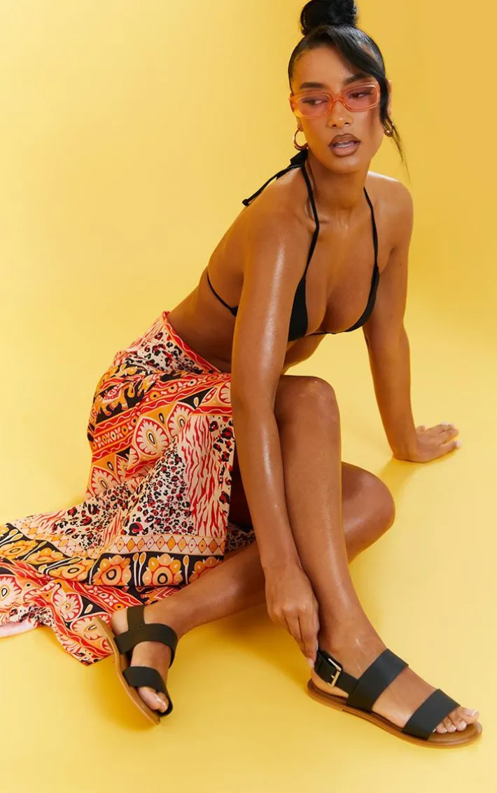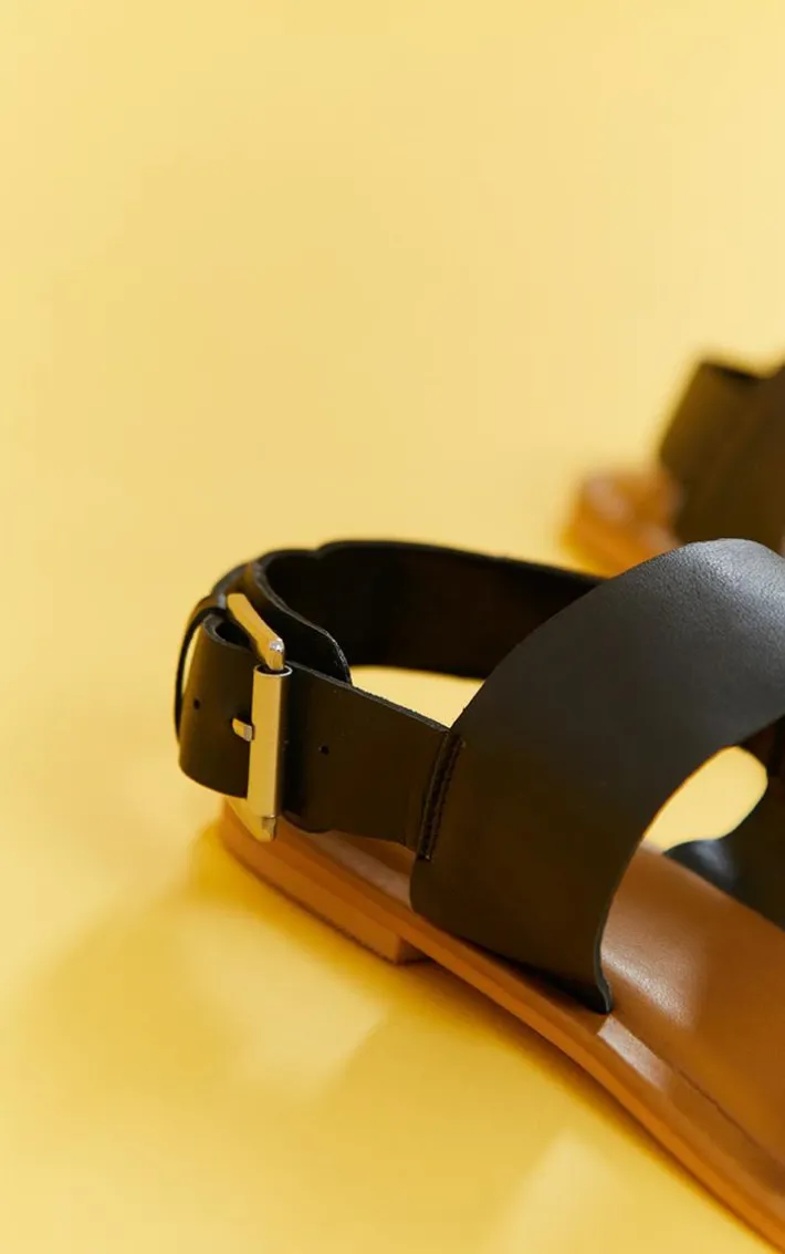 The new season is here which means you need a revamp and these black wide fit leather thick double strap buckle fastening flat sandals are just what you need. With a black faux leather material, thick double strap design and a buckle fastening, how could you say no? They’re a yes from us.