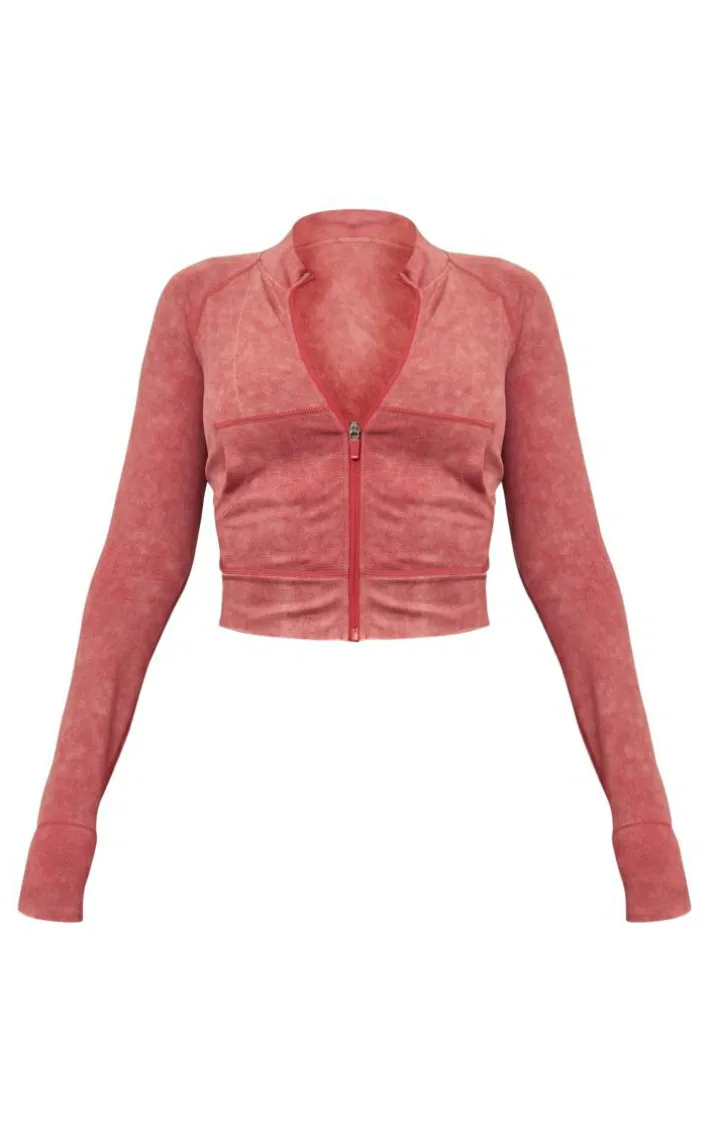 Take your gym look to a whole new level with this red acid wash seamless zip up cropped jacket. Brought to you in a red acid wash material with a zip up design, a seamless fit and a cropped length, we just can’t get enough. Team this cropped jacket with the matching leggings, a sports bra and sneakers for a fierce workout look you will be reaching for again and again.