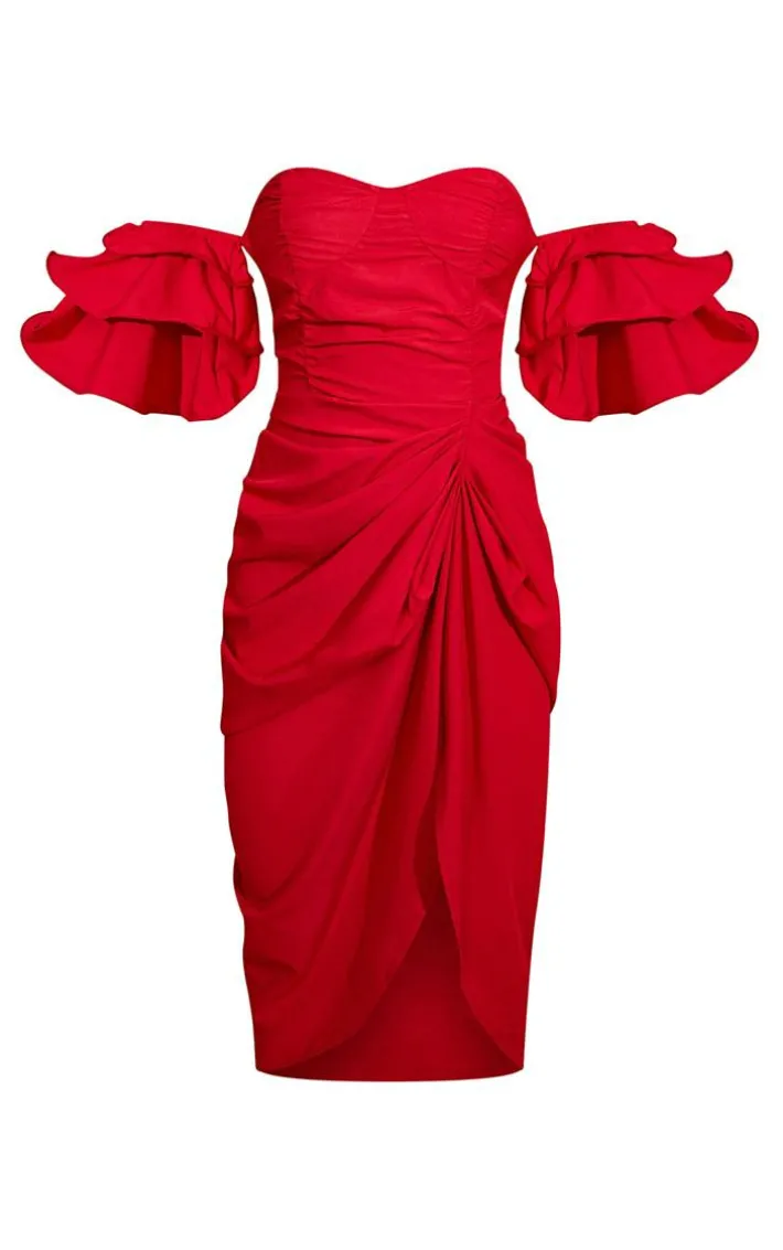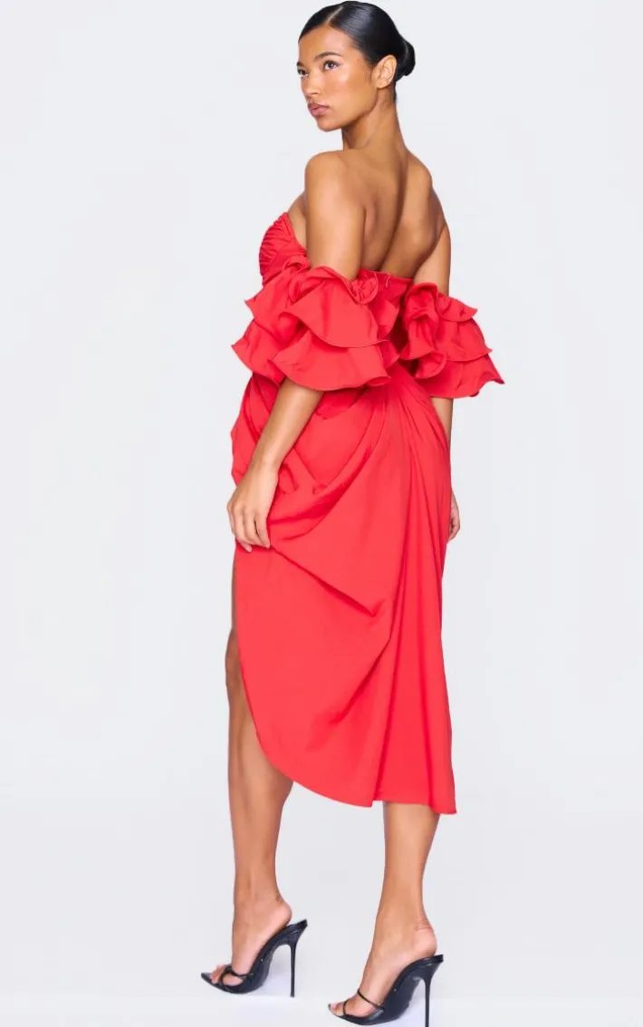 A red dress is a staple piece in every ‘s wardrobe and we are loving this one. Featuring a red material with a bardot neckline, frill detailing and a midi length, we’re obsessed. Team this with strappy heels and hoop earrings for a sassy look.