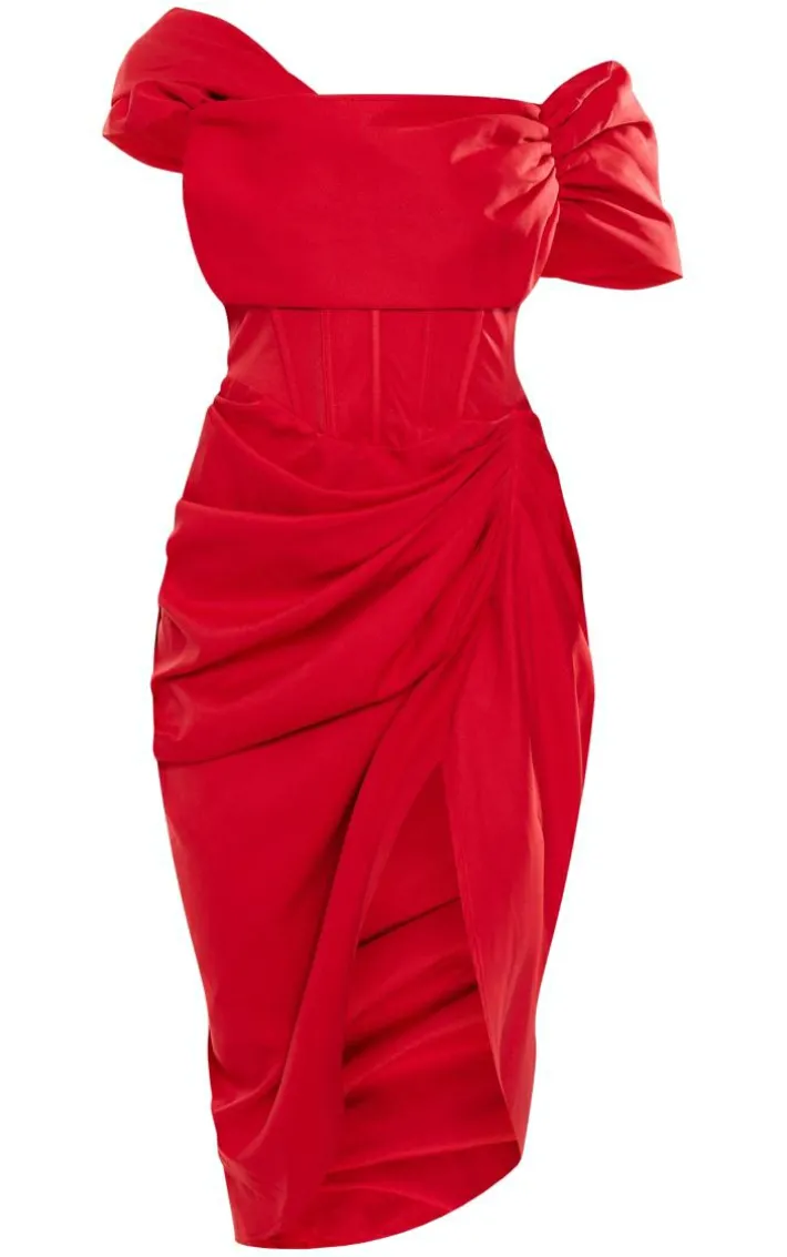 Every needs a red dress is their collection, that’s why we’ve got you covered with this red corset bardot draped midi dress. This unreal dress is brought to you in a red material, with a corset design, what more could you want? Its bardot fit and draped detail add’s a touch of luxe to your look. Team this unreal midi dress with some clear heels and fave accessories for a look like no other.