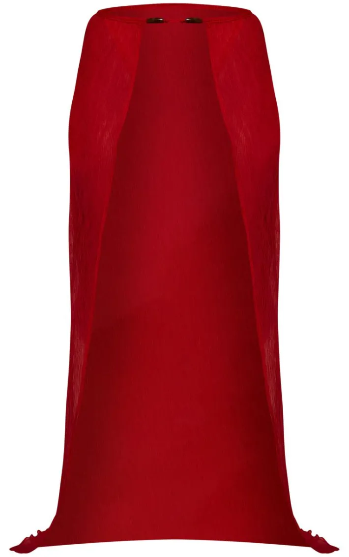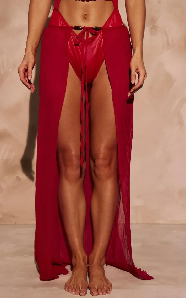 Have hearts racing for all the right reasons with this red crinkle maxi beach sarong. Brought to you in a red crinkle material with a maxi length, you will not blend in. This sarong is perfect for those beach days and beyond. Team with the matching bikini and your fave accessories for a look that will steal all the stares.