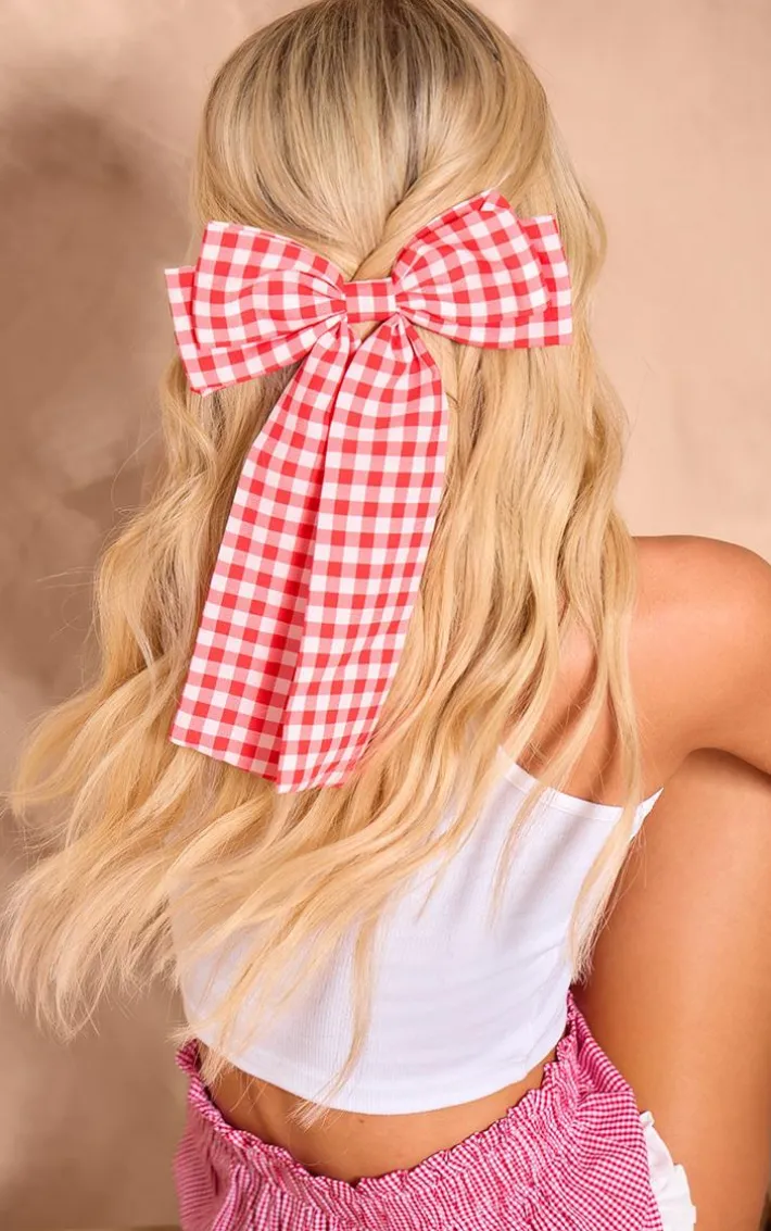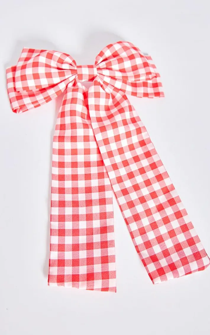 You need to add this red gingham oversized bow hair clip to your off duty wardrobe. Brought to you in a red gingham material with an oversized design, we are seriously obsessed. This oversized bow hair clip is all you need to feel feminine this season and beyond. Team with your fave outfit of the day for a fool proof finish.