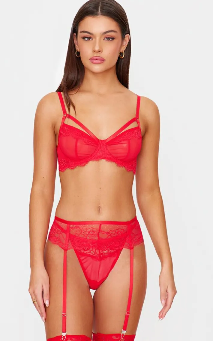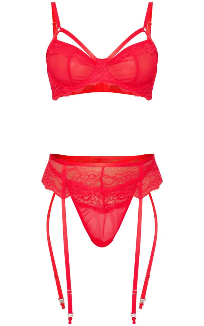 Get hearts racing in this red lace 3 piece lingerie set. Brought to you in a red hue lace material, this set includes a bra, thong, and suspenders perfect for elevating your evening in with your significant other. Style with matching hue stockings and simple accessories for a night you won’t forget. It’s a yes from us.
