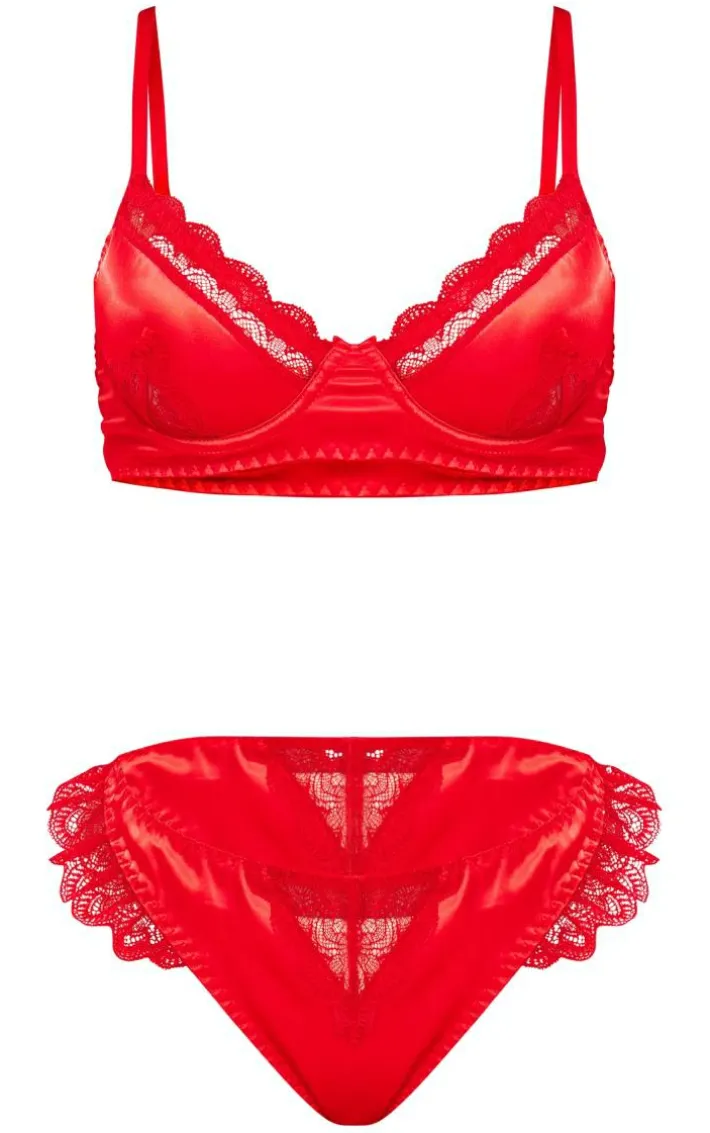 Have hearts racing with this red lace trim underwired lingerie set. This set includes a bra and bottoms both brought to you in a red hue with a lace trim design, how could you say no? This set is everything and more we’re loving paired with a satin robe, high heels and accessories for a look like no other.