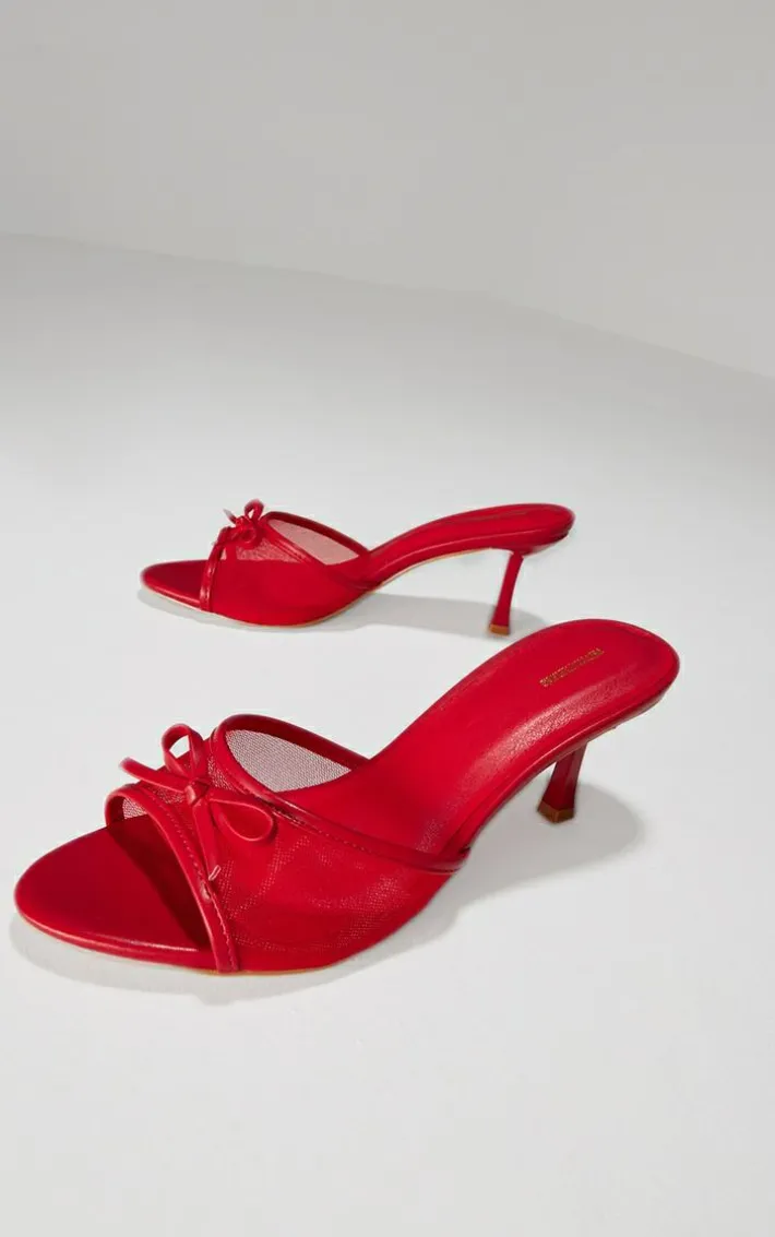 Add some bright hues into your shoe collection with these red mesh round toe bow strap mid heeled mules. Brought to you in a red mesh material, with a round toe design and a bow toe design, how can you not fall in love? We’re all about styling these heeled mules with a matching hue dress.