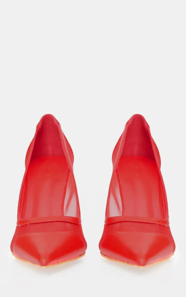 Step out in style with these red mesh wide fit point toe contrast high stiletto court heels. Brought to you in a statement red hue, with an edgy mesh material and a contrast point toe design, these heels are all the new you need. Style with your go-to weekend look for a finish like no other.