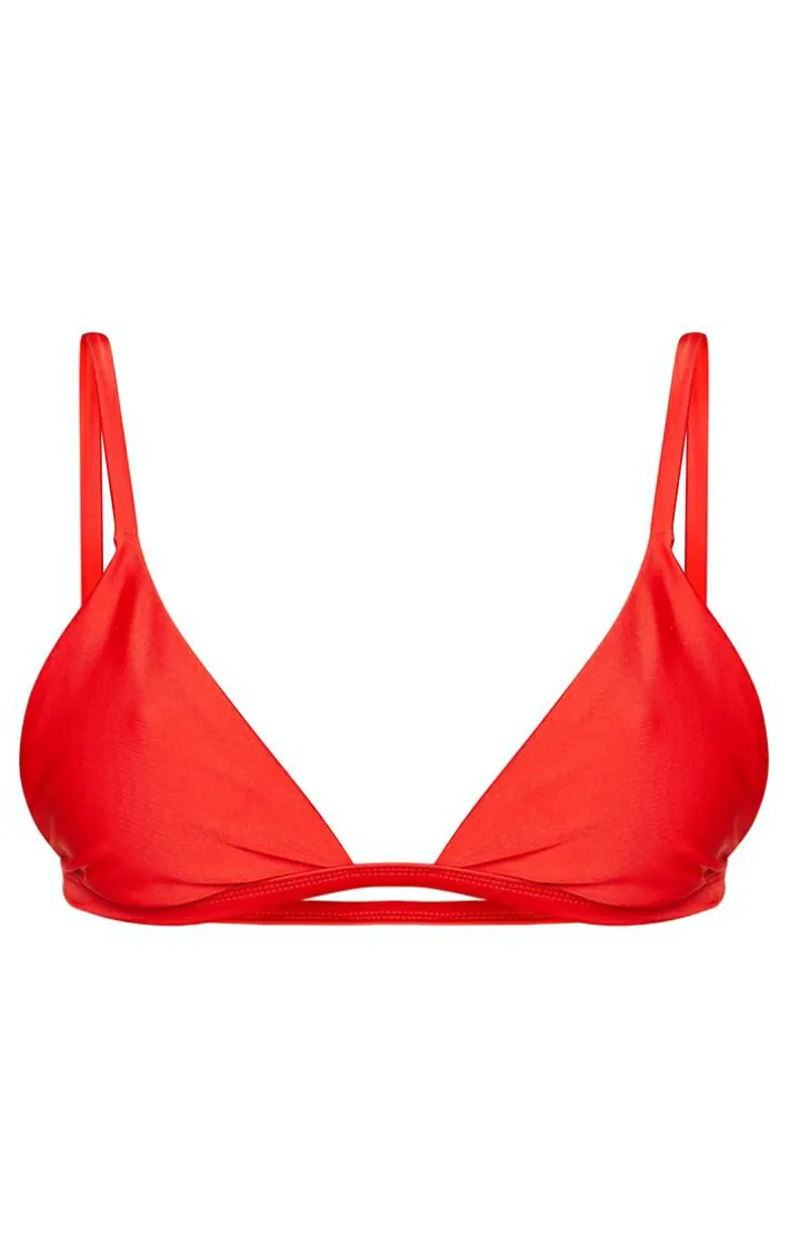 Add some scarlet tones to your swimwear collection. Featuring a red material with thin side straps and an itsy bitsy fit. For a look that will really get you noticed, wear with the matching bikini bottoms and your fave beach accessories.