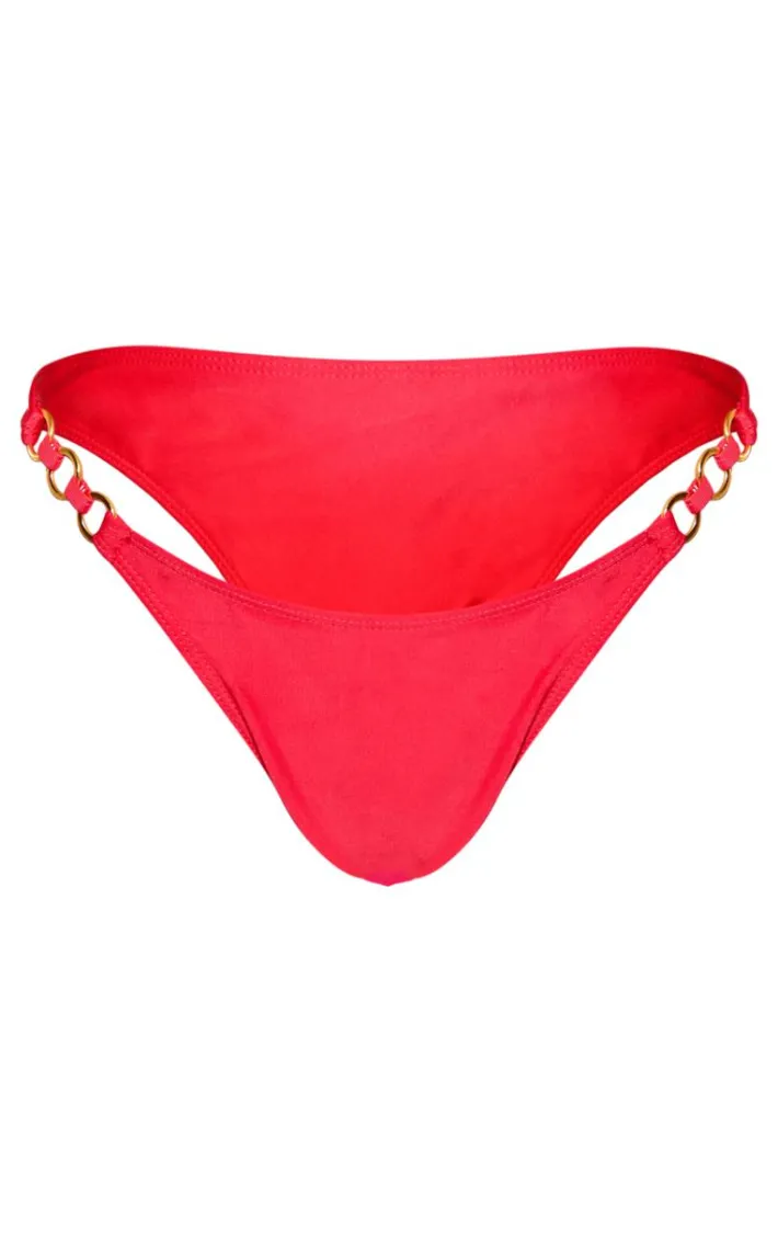 Top up your tan in style with these red o ring detail bikini bottoms. We know you’ll look absolutely unreal in their luxe o ring design and high leg cut for your next trip away with the girls. Pair with the matching red o ring detail bikini top, gold jewelry and a statement necklace for an insta-worthy beach fit.