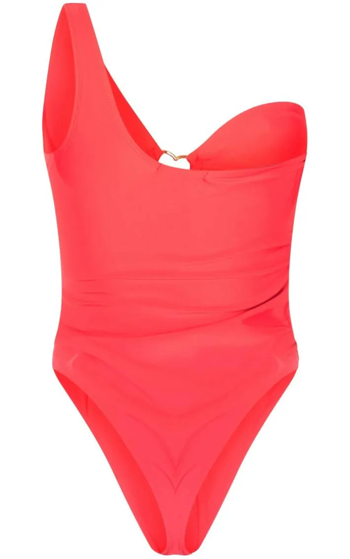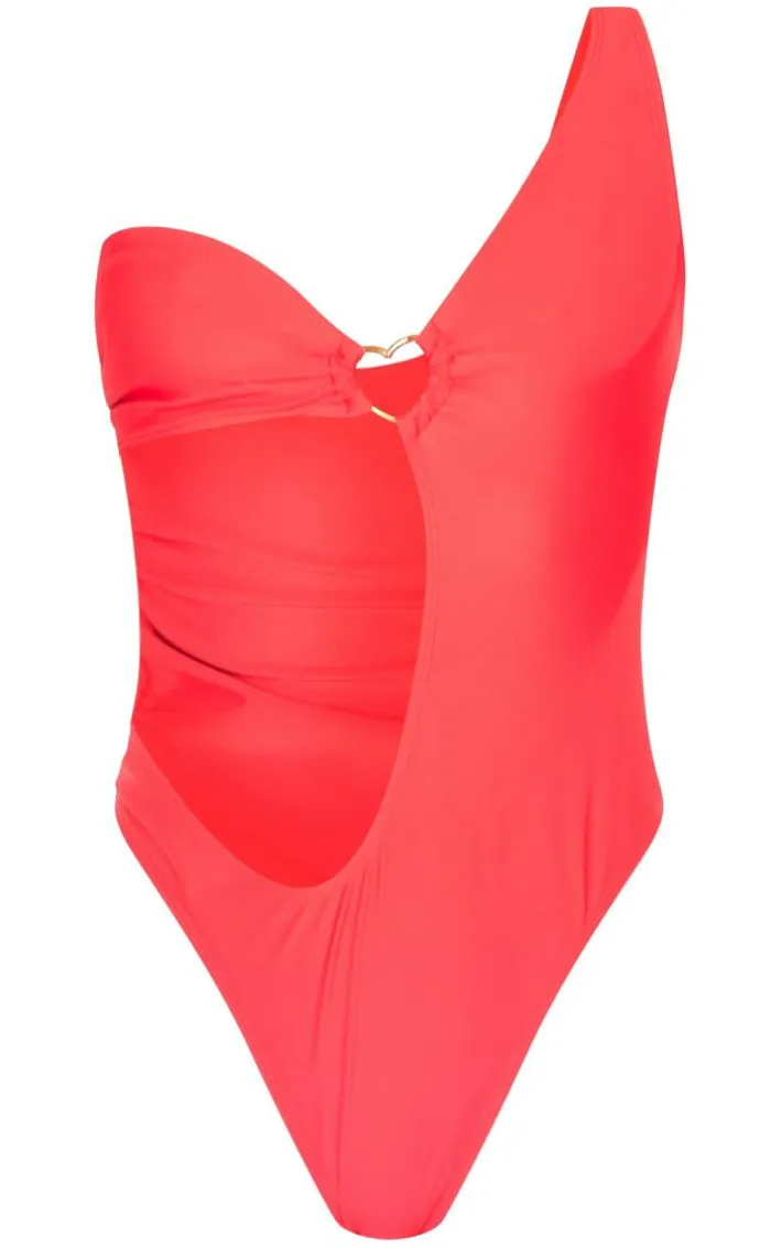 You are sure to turn heads for all the right reasons with this red one shoulder heart trim cut out swimsuit. Brought to you in a red material with a one shoulder design, we are obsessed. Its heart trim and cut out detail are perfect for those vacay days. Style with your go-to accessories to finish off the look everyone is loving.