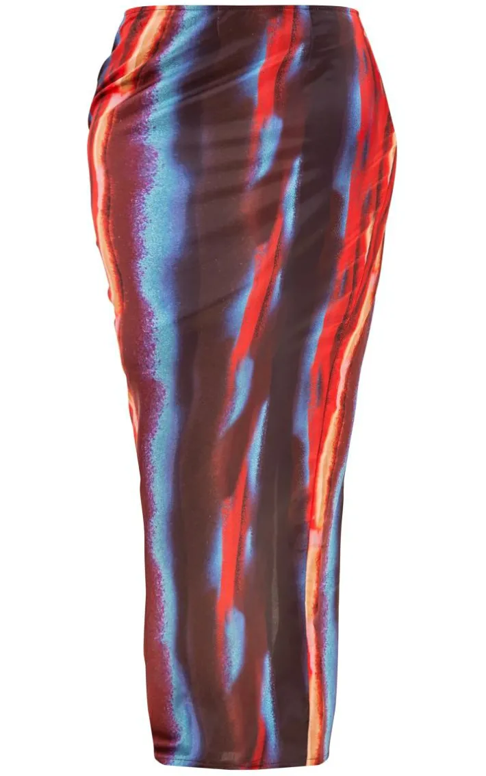 Give your new season wardrobe the glam upgrade it deserves with this red printed satin low rise maxi skirt, you’re sure to be at the center of attention with this statement piece. It is made using a red printed satin material with a low rise design and a maxi length, how could you say no? Team this maxi skirt with a basic top, your highest heels and simple accessories for a dreamy date night look.