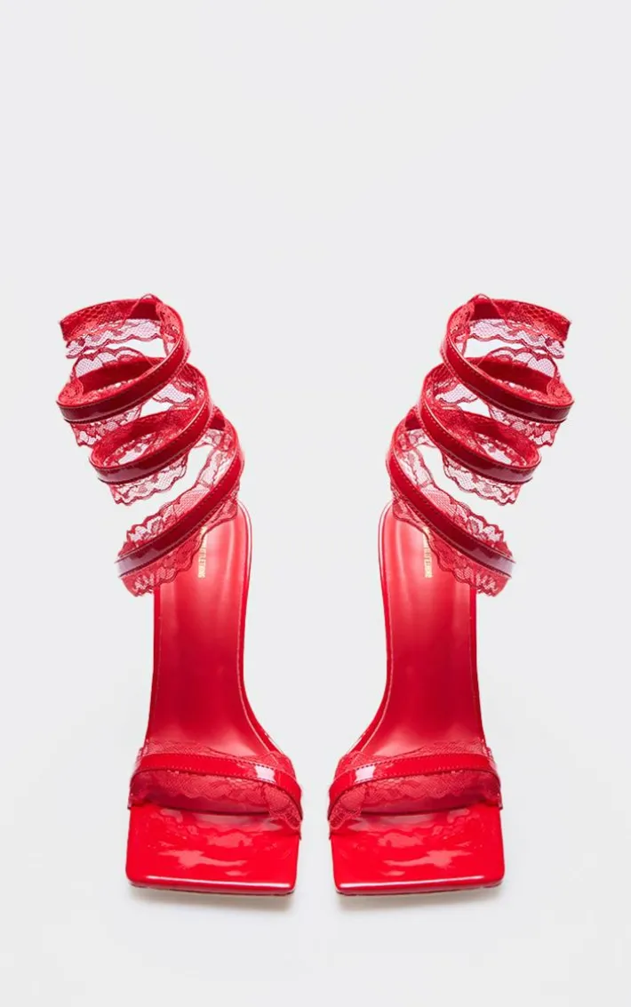Make a statement in these red PU square toe lace trim spiral strap heeled sandals. Brought to you in a red hue PU material with a square toe design, a spiral strap and lace trim detailing, we are obsessed. Just add these red heels to your weekend outfit to instantly elevate the look.