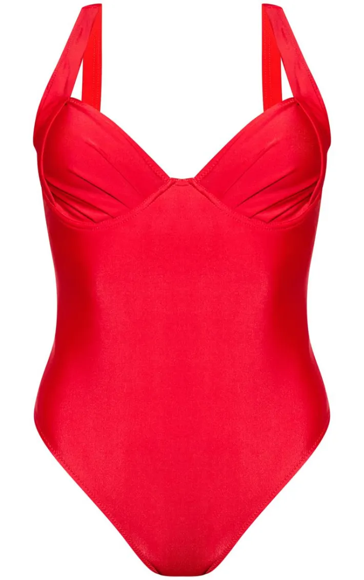 Soak up the sun in style with this red ruched cup underwired swimsuit. This swimsuit is brought to you in a red hue with ruched detailing and an underwired cup, what’s not to love? This swimsuit will have all eyes on you. Finish off the look by styling this with your sandals and accessories for a look like no other.